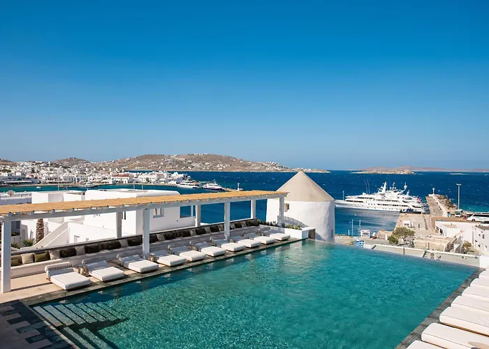 Localizado a cerca de 5 minutes a pé de Meletopoulou Public Garden, o Porto Mykonos Hotel Mykonos Town impressionante de 4 estrelas tem terraço. Museu Agrícola fica a apenas 0.6 km de distância, e o Porto Antigo de Míconos fica bastante perto deste hotel de estilo cicládico.